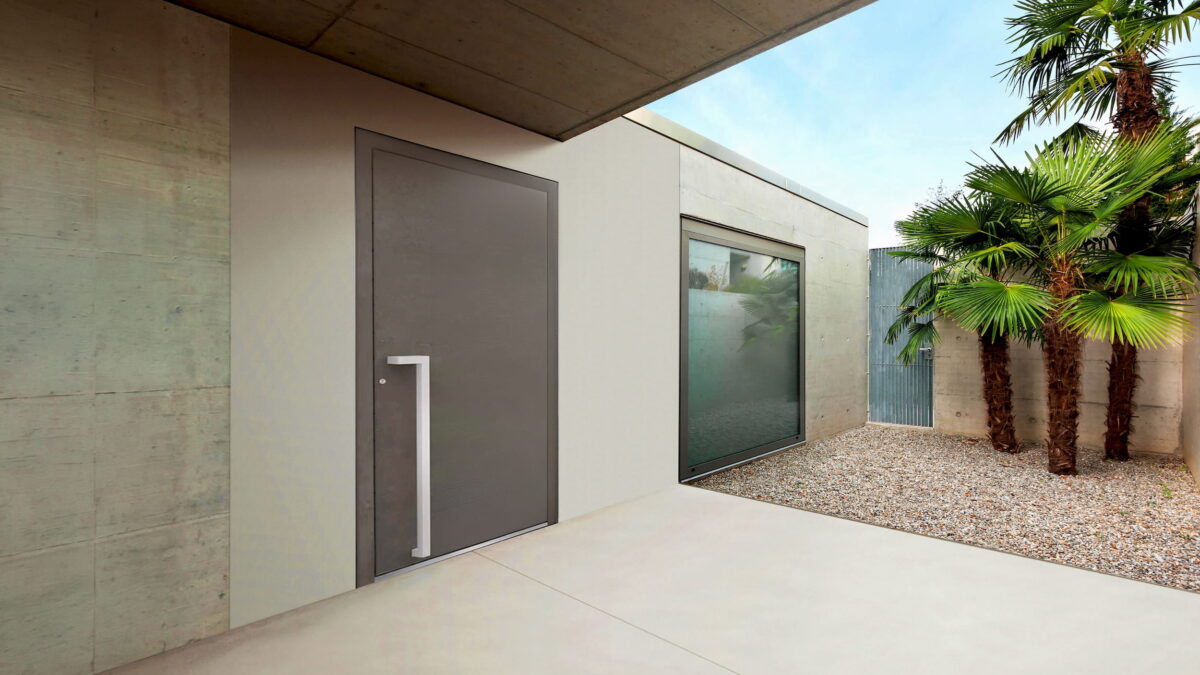 - Porta in alluminio neroLe porte in alluminio verniciato nero sono ideali per uno stile moderno o industriale, rappresentando una scelta audace per chi cerca un design di impatto. Possono essere lisce o con pannelli geometrici per uno stile contemporaneo e pulito. Spesso sono usate in case dal design minimalista o in loft urbani dove aggiungono un tocco artistico.